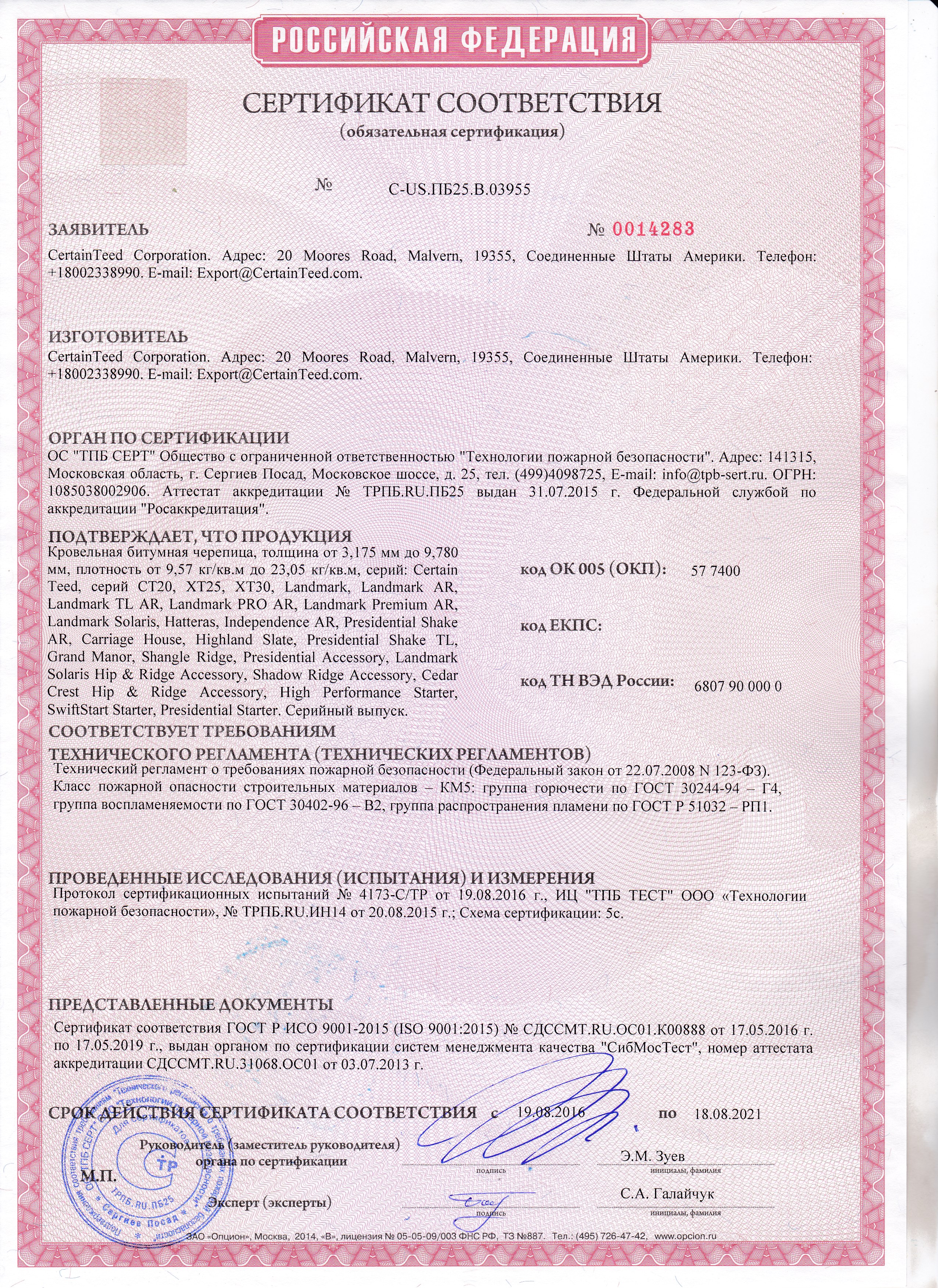 Сертификаты продукции Катепал
